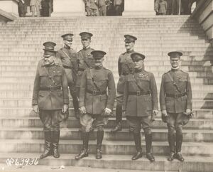 After arriving in France, Marshall served with the 1st Division on the Saint-Mihiel, Picardy, and Cantigny fronts.[5] Although the division was designated as a Regular Army formation, most of the officers and men serving within its ranks were almost completely lacking in combat experience. They were also deficient "in training, staff work, and logistical problems. More than half of its soldiers were new recruits. Only a few of its non-commissioned officers had been in the Army for two years or more, and nearly all of the lieutenants had been commissioned less than six months".[31]