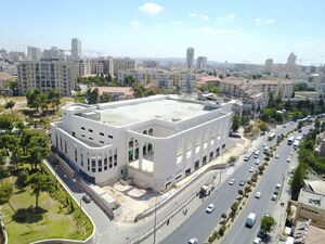 The group's headquarters is located in Jerusalem. During and after the British Mandate, the group's beth midrash was at the Sfas Emes Yeshiva, near Mahane Yehuda. Later on, the synagogue moved to Ralbach Street in the Geula neighborhood, and in the late 1990s, the Great Beth Midrash Gur was inaugurated on Yirmeyahu Street, near the Schneller Orphanage complex. In 2015, an extension to the building was begun, and on Rosh Hashanah 2018 (5779), the second wing of the Beth Medrash was inaugurated.[12] In 2022, the building was finished when the two wings were joined,[13] making it the largest synagogue in the world, with the main sanctuary seating up to 20,000, and having an area of approximately 35،000 m2 (380،000 sq ft).[14]