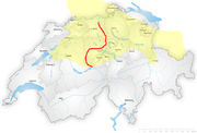 Distribution of High Alemannic dialects; marked in red is the Brünig-Napf-Reuss line.