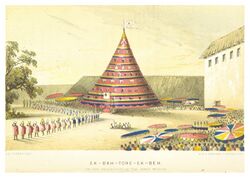 One additional way that Ghezo maintained domestic support was by lengthening the ceremony cycle in the 1850s with additions to the Annual Customs including a ceremony for the palm oil trade, one to celebrate ending tribute to the Oyo empire, and one dedicated to Ghezo himself (but to the time when he was a prince).[1]
