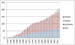 في أكتوبر 2011، لم يكن هناك سوى نظام التموقع العالمي الأمريكي ناڤستار ونظام گلوناس الروسي. الصين تعمل على تطوير نظام الملاحة بيدو الاقليمي ليتحول إلى نظام الملاحة كومپاس العالمي بحلول 2020.[1] نظام گاليليو للتموقع الأوروپي في مرحلة التطوير الأولية، ومن المقرر أن يدخل حيز التشغيل في عام 2020 أو قبلها.[2] تبني الهند أيضاً نظام السواتل الملاحية الإقليمي الهندي والذي سيبدأ تشغيله في 2014. تعمل الكثير من البلدان على تطوير أنظمة الملاحة الاقليمية الخاصة بها مثل فرنسا، واليابان.