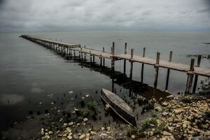 Due to evaporation and lack of water inflow, the gulf and the marshland suffer from increasing silting, with adverse effect to local marine life and economy.[4][5] Inflow of freshwater from rivers such as the Qarasu reduces salinity, with the additional effect of the water becoming muddier.[2] According to a member of the Caspian Sea National Research Center, the gulf will have vanished by 2025 " if no efficient remedial measure is adopted".[6]