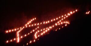 گوزان نو اُكوريبي (五山送り火, [roughly "نيران الوداع الجبلية الخمسة"] Error: {{nihongo}}: transliteration text not Latin script (pos 10: ن) (help)), more commonly known as Daimonji (大文字, roughly "big letter"), is a festival in Kyoto, Japan. It is the culmination of the Obon festival on August 16, in which five giant bonfires are lit on mountains surrounding the city. It signifies the moment when the spirits of deceased family members, who are said to visit this world during Obon, are believed to be returning to the spirit world—thus the name Okuribi (送り火?, roughly "send-off fire").