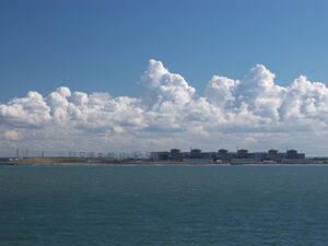 The Gravelines Nuclear Power Station is a nuclear power plant located near the commune of Gravelines in Nord, France, approximately 20 km (12 mi) from Dunkerque and Calais. Its cooling water comes from the North Sea. The plant consists of 6 nuclear reactors of 900 MW each. In 2017 the plant produced 31.67 TWh of electric energy, 5.9% of French electricity production.[1] Two reactors entered service in 1980, two in 1981, and two in 1985.