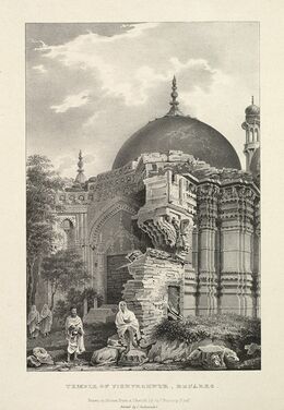 * شكل طفيف حيث كان أورنگ زيب هو الذي دمر المعبد بعد أن عانت إحدى قريبات الضابط المرافق من هذا المصير.[د]