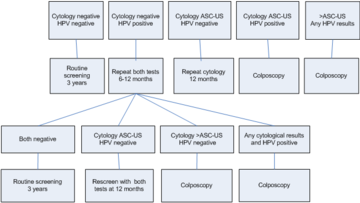 كيفية الكشف والمتابعة للخلية القشرية غير المعتادة، ذات أهمية غير معروفة ASC-US لأنواع ف.و.ح.ب. عالية المخاطرة