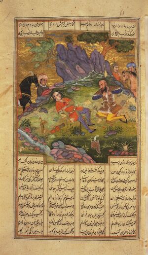 - ^ أ ب Firdawsi, Firdawsi (1906). The Sháhnáma of Firdausí, Volume 2. K. Paul, Trench, Trübner & Co. Ltd. pp. 118, 122–135. Retrieved 28 أكتوبر 2010.