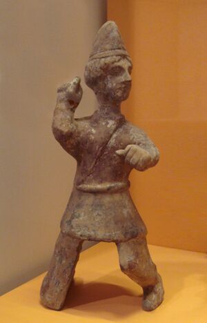 In 53 BC, Huhanye Chanyu decided to submit to the Han court.[134] He sent his son Zhulouqutang (朱鏤蕖堂), the Tuqi King of the Right, as hostage to the Han court in 53 BC.[134] In 52 BC, he formally requested through the officials at the Wuyuan commandary to have an audience with the Han court to pay homage.[134] Thus, the next year (51 BC), he arrived at court and personally paid homage to Emperor Xuan during the Chinese New Year.[134] In 49 BC, he traveled to the Han court for a second time to pay homage to the emperor.[120] In 53 BC, Zhizhi Chanyu also sent his son as hostage to the Han court.[136] In 51 and 50 BC, he sent two envoys respectively to Han to present tribute, but failed to personally come to the Han court to pay homage.[136] Therefore, he was rejected by the Han court, leading to the execution of a Han envoy in 45 BC.[137] In 33 BC, Huhanye Chanyu came to the Han court to pay homage again.[136] During his visit, he asked to become an imperial son-in-law.[136] Instead of granting him this request, Emperor Yuan decided to give him a court lady-in-waiting.[136] Thus, the Han court allowed Huhanye Chanyu to marry Lady Wang Zhaojun.[136][137] Yituzhiyashi (伊屠智牙師), the son of Huhanye and Wang Zhaojun, became a vocal partisan for the Han empire within the Xiongnu realm.[138] Although peaceful relations were momentarily achieved, it fully collapsed when the Han official Wang Mang came to power.[105][139]