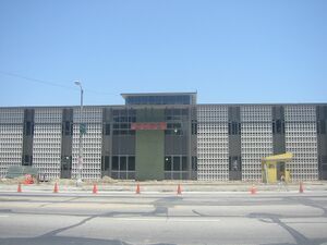 The Hanna-Barbera headquarters in Los Angeles in the 1990s. The "swirling star" logo on the right was designed by Saul Bass in 1979. | |