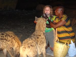 A long-standing tradition of feeding meat to spotted hyenas also evolved during the 1960s into an impressive night show for tourists.[3] (See spotted hyenas in Harar.)