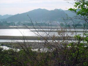 Haridwar is situated at a height of 314 m (1،030 ft) from the sea level, between Shivalik Hills in the North and Northeast and the Ganges River in the South.[30]