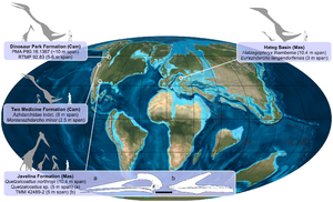 11. ^ Andres, B.; Langston, W. Jr. (2021). "Morphology and taxonomy of Quetzalcoatlus Lawson 1975 (Pterodactyloidea: Azhdarchoidea)". Journal of Vertebrate Paleontology. 41 (sup1): 142. Bibcode:2021JVPal..41S..46A. doi:10.1080/02724634.2021.1907587. ISSN 0272-4634. S2CID 245125409.