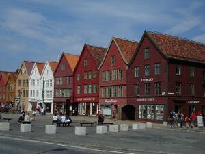 The Hanseatic League took control of Norwegian trade in the 14th century and established trading posts in most Norwegian port cities, such as Oslo and Bergen, which had the largest German colony. In 1380, Olaf Haakonsson inherited both the Norwegian and Danish thrones, creating a union between the two countries.[39] In 1397, under Margaret I, the Kalmar Union was created between the three Scandinavian countries. She waged war against the Hanse, resulting in a trade blockade and higher taxation on Norwegians, which resulted in a rebellion. However, Norway and its Council of State was too weak to secede from the union.[40]