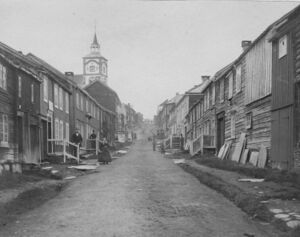 The textile industry started in the 1840s, which was followed up with mechanical workshops to build new machinery as the British embargo hindered import of textile machinery.[77] An economic crisis hit the country from 1848, resulting in Marcus Thrane establishing the first trade unions and demanding that equality before the law be independent of social class. Parliament passed a series of laws abandoning economic privileges and easing domestic trade during the 1840s and 1850s.[78] Population increase forced the clearing of new land, although some of the growth came in the cities. The population of Christiania reached 40,000 in 1855.[79] By 1865 the population reached 1.7 million; the large increase was largely caused by better nutrition from herring and potatoes, a sharp decrease of infant mortality and increased hygiene.[76] Emigration to North America started in 1825, with the first mass emigration commencing in the 1860s. By 1930, 800,000 people had emigrated, the majority settling in the Midwestern United States.[79]