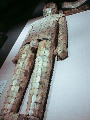 The Zhou dynasty (ح. 1056) had made the state of Qin in Western China as an outpost to breed horses and act as a defensive buffer against nomadic armies of the Rong, Qiang, and Di peoples.[2] After conquering six Warring States (i.e. Han, Zhao, Wei, Chu, Yan, and Qi) by 221 BCE,[2] the King of Qin, Ying Zheng, unified China under one empire divided into 36 centrally-controlled commanderies.[3] With control over much of China proper, he affirmed his enhanced prestige by taking the unprecedented title huangdi, or 'emperor', known thereafter as Qin Shi Huang (i.e. the first emperor of Qin).[3] Han-era historians would accuse his regime of employing ruthless methods to preserve his rule.[4]