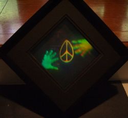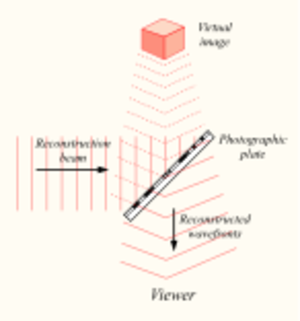 يمكن أن يعاد تركيب خيال الجسم الأصلي بإرسال حزمة ضوئية وحيدة التواتر (ذات طول موجة واحدة) لإضاءة الصورة الثلاثية الأبعاد السلبية.
