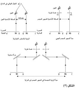 إن الشعاع الوارد A والشعاع المنعكس من المرآة M يسقط أيضاً على الصفحة P، وتتداخل هاتان الحزمتان الضوئيتان إحداهما بالأخرى، وهذا يعني أن تتراكب سعات الأمواج بعضها مع بعض، وتسبب هذه الأمواج المتداخلة على صفيحة التصوير نموذجاً معقداً من شرائط وبقع مغزلية الشكل تسمى أهداب التداخل. تتألف هذه الأهداب من تناوب مناطق بيضاء مضيئة ومناطق سوداء قاتمة. تنتج المناطق المضيئة حين تصطدم حزمتان ضوئيتان لهما الطور نفسه بصفيحة التصوير P، أي حين تجتمع قمة موجبة مع قمة موجبة أخرى فتتراكب السعات الموجية أو حين يجتمع غور سالب للموجة مع ما يماثله، عندها تكون الأمواج في طور واحد. وبالعكس فحين تجتمع موجتان لهما السعة نفسها ولكن بطورين متعاكسين على صفيحة التصوير P يعدم أحدهما الآخر، وينتج عن ذلك منطقة سوداء (عقدة اهتزاز) (الشكل -5).