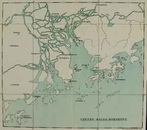 The Humen, also known as the Bocca Tigris or the Bogue, is a narrow strait in the Pearl River Delta that separates Shiziyang in the north and Lingdingyang in the south. It is located near Humen Town in China's Guangdong Province. It is the site of the Pearl River's discharge into the South China Sea. It contains the Port of Humen at Humen Town. The strait is formed by the islands of Chuenpi (穿鼻, p Chuanbi) and Anunghoy (阿娘鞋, p Aniangxie; also called 威远, p Weiyuan) on the eastern side, and Taikoktow (大角头, p Dajiaotou) on the western side.[1] Since 1997, the strait has been traversed by the Humen Pearl River Bridge. Bocca Tigris was the entry to China's only trading city, Canton.