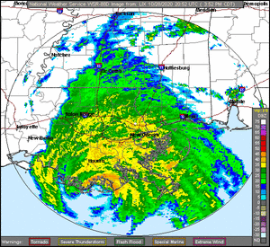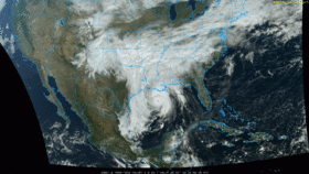 ![]() الإعصار زيتا قبل أن يصل لذروته ويصل أراضي جنوب شرق لويزيانا، 28 أكتوبر. | |