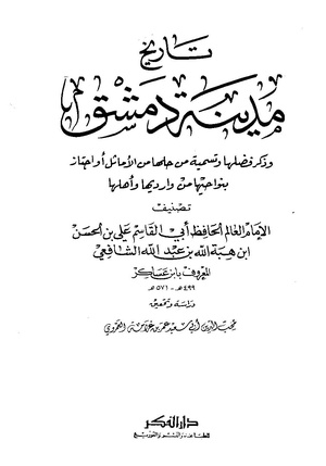 وكان العمل ضخمًا يحتاج إنجازه إلى أعمار كثيرة، وكاد المؤلف ينصرف عن إنجازه وإتمامه، لولا أن خبر هذا الكتاب تناهى إلى أسماع "نور الدين محمود" حاكم دمشق وحلب؛ فبعث إلى الحافظ ابن عساكر يشحذ همته ويقوي من عزيمته، فعاد إلى الكتاب وأتمه سنة (559 هـ - 1163م)، ثم قام ولده القاسم بتنقيحه وترتيبه في صورته النهائية تحت بصر أبيه وعنايته، حتى إذا فرغ منه سنة (565 هـ - 1169م) قرأه على أبيه قراءة أخيرة، فكان يضيف شيئا، أو يستدرك أمرًا فاته، أو يصوب خلطًا، أو يحذف ما يراه غير مناسب أو يقدم موضعًا أو يؤخر مسألة، حتى أصبح على الصورة التي نراها الآن بين أيدينا.