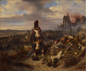 The phrase "La Garde meurt mais ne se rend pas!" ("The Guard dies but does not surrender!") is generally attributed to General Pierre Cambronne. It has been suggested that this was in fact said by another general of the Guard, Claude-Étienne Michel, during their last stand at the Battle of Waterloo. The retort to a request to surrender may have been "La Garde meurt, elle ne se rend pas!" ("The Guard dies, it does not surrender!"). Letters published in The Times in June 1932 record that it may have been said by General Michel.[2][3]