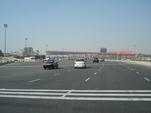 The airport, which lies in south Delhi near the border with Haryana state, is connected to Delhi in the north and Gurgaon in Haryana in the south by two expressways, both of which have eight lanes: the older and busier 27.7 km long at-grade Delhi–Gurgaon Expressway NH 48 (part of Delhi-Jaipur National Highway) which runs through Gurgaon, and the newer 26.7 km long elevated Dwarka Expressway NH-248BB, which passes west of Gurgaon.[227] The Dwarka Expressway originates immediately east of IGI airport at Shiv Murti and terminates in Haryana near Kherki Daula Toll Plaza, south of Gurgaon, near the Western Peripheral Expressway (WPE).[228]