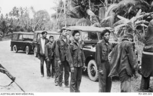 أسرى من المتسللين الإندونيسيين بالقرب من نهر كساڠ، ترنداك، ملقا في 29 أكتوبر 1964، اعتقلهم الفوج الأسترالي الملكي.