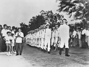 The withdrawal parade in Labuan from the Royal Navy, Royal Australian Navy and Royal New Zealand Navy at the end of the confrontation after their successful mission.