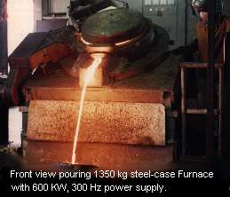 A preheated, one-ton furnace melting iron can melt cold charge to tapping readiness within an hour. Power supplies range from 10 kW to 42 MW, with melt sizes of 20 kg to 65 tons of metal respectively.[بحاجة لمصدر]