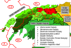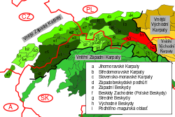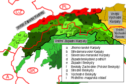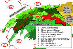 - ^ Often considered part of Outer Western Carpathians in non-geomorphological systems.