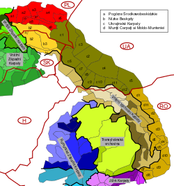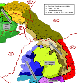 Divisions of the Carpathians are a categorization of the Carpathian mountains system.
