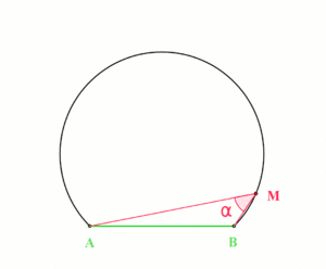 For fixed points A and B, the set of points M in the plane, for which the angle AMB is equal to α, is an arc of a circle. The measure of AOB, where O is the center of the circle, is 2α.