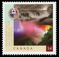 طابع بريدي كندي في الذكرى المئوية (2009) لتوقيع معاهدة المياه الحدودية 1909.