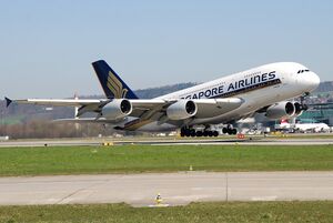 Larger aircraft such as the Airbus A380 are often used for international flights.