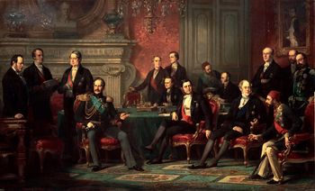 Diplomats at the Congress of Paris, 1856, settled the Crimean War; painting by Edouard Louis Dubufe