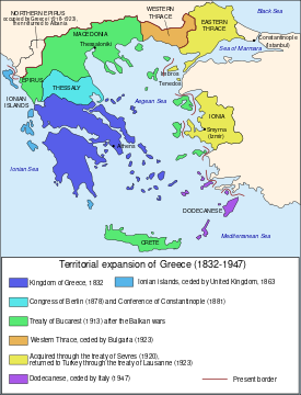 The territorial evolution of Greece since its independence in 1832 until 1947