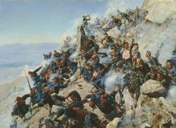 The Crimean War (1853–1856) was fought between Russia on the one hand and an alliance of Great Britain, France, Sardinia, and the Ottoman Empire on the other. Russia was defeated.[78][79]