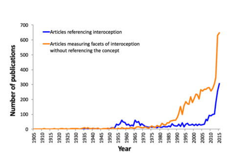 شهدت أواخر الخمسينيات والستينيات اهتمامًا متزايدًا بالحس الداخلي بناءً على عدد المنشورات التي تم إصدارها خلال تلك الفترة الزمنية التي أشارت إلى المصطلح. تمت الإشارة إلى هذه الزيادة باسم " إشارة الارتجاع البيولوجي " ، حيث قام الباحثون بفحص قدرة الشخص على التحكم في الوظائف اللاإرادية كطريقة علاج لظروف مختلفة..[17]