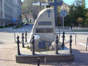 Several leading Legionnaires and their associates, including Horia Sima, Constantin Papanace, and Ilie Gârneață, among others, continued to live in exile and organize politically long after the Second World War. Under Sima's leadership and with NATO funding, Legionnaires were covertly parachuted into Romania in 1949, with the goal of overthrowing the communist government. Related anti-communist resistance groups also received funding from the Central Intelligence Agency.[61] By the 1950s, groups of exiled Legionnaires had formed a network of political, cultural, and "religious" organizations in Spain, France, Italy, Germany, Austria, Canada, the United States, and South America.[62] Through these organizations, they continued to publish Legionary, anti-communist, or ultra-nationalist literature; they also forged connections with other ultra-nationalist or fascist movements and attempted to recruit new members.[62] With funding from supporters, a monument was erected to Ion Moța and Vasile Marin in Majadahonda, Spain in the mid-1970s.[61]