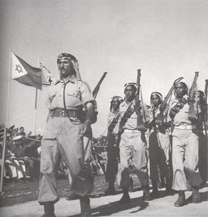 جنود بدو في الجيش الإسرائيلي من عرب الهيب في استعراض عسكري في تل أبيب في يونيو 1949.