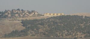 From 1967 to 2003, successive Israeli governments assisted the transfer of some 230,000 Jewish civilians into 145 West Bank and Gaza settlements and approximately 110 outposts.[144] By 2016, approximately 42% of the settlement workforce (55,440) found employment in those settlements.[145] The ultra-Orthodox have dominated the process from the beginning: from 2003 to 2007 alone the population of Beitar Illit, whose construction was facilitated by the expropriation of 1,500 dunams of Naḥḥālīn farmland,[146] rose 40%, while Modi'in Illit, built on the Palestinian village lands of Ni'lin, Kharbata, Saffa, Bil'in and Dir Qadis,[147][148] increased by 55%.[149]