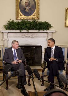 Secretary General of NATO Jaap de Hoop Scheffer and President of the United States Barack Obama during a meeting in the Oval Office in the White House on 25 March 2009.