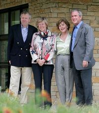 من اليسار لليمين. ياپ دي هوپ شفر وزوجته جنين في زيارة للورا وجورج دبليو بوش في مزرعة بوش في تكساس في عام 2007.