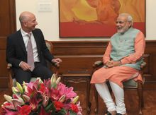 بيزوس برفقة رئيس الوزراء الهندي نارندرا مودي في 2014.