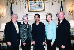 Jennifer Granholm (second from right) with Mississippi Governor Haley Barbour (first left), Kansas Governor Kathleen Sebelius (second), United States Secretary of State Condoleezza Rice (center), and Georgia Governor Sonny Perdue (right)