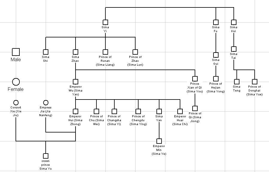 ![]() أسرة جين الغربية (أصفر) في 280 م | |||||||||||||||