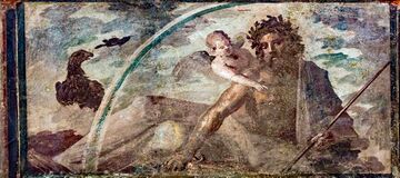 Jupiter in a wall painting from Pompeii, with eagle and globe, 62–79 AD