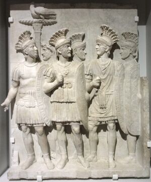 The first secession was caused by the excessive debt burden on the plebs. The legal institute of the nexum permitted a debtor to become a slave of his creditor. The plebs argued the debts had become unsustainable because of the expenses of the wars wanted by the patricians. As the senate did not accede to the proposal of a total debt remission advanced by dictator and augur Manius Valerius Maximus the plebs retired on the Mount Sacer, a hill located three Roman miles to the North-northeast of Rome, past the Nomentan bridge on river Anio.[47] The place is windy and was usually the site of rites of divination performed by haruspices. The senate in the end sent a delegation composed of ten members with full powers of making a deal with the plebs, of which were part Menenius Agrippa and Manius Valerius. It was Valerius, according to the inscription found at Arezzo in 1688 and written on the order of Augustus as well as other literary sources, that brought the plebs down from the Mount, after the secessionists had consecrated it to Jupiter Territor and built an altar (ara) on its summit. The fear of the wrath of Jupiter was an important element in the solution of the crisis. The consecration of the Mount probably referred to its summit only. The ritual requested the participation of both an augur (presumably Manius Valerius himself) and a pontifex.[48]