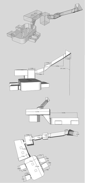 Isometric, plan and elevation images of KV34 taken from a 3d model