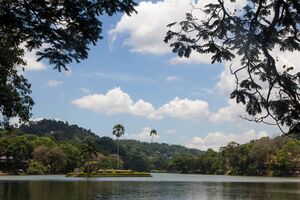 كاندي (Kandy ؛ سنهالا: මහනුවර, romanised: Mahanuwara [mahanuʋərə] استمع ; تاميلية: கண்டி, romanised: Kaṇṭi [ˈkaɳɖi] استمع ) هي مدينة في المحافظة الوسطى في سريلانكا. وهي عاصمة المحافظة الوسطى لسريلانكا ومنطقة كاندي. يعتبر وادي كاندي منطقة زراعية استوائية، يزرع فيه الشاي. It was the last capital of the Sinhalese monarchy from 1469 to 1818, under the Kingdom of Kandy.[1] The city is situated in the midst of hills in the Kandy plateau, which crosses an area of tropical plantations, mainly tea. Kandy is both an administrative and religious city and the capital of the Central Province. Kandy is the home of the Temple of the Tooth Relic (Sri Dalada Maligawa), one of the most sacred places of worship in the Buddhist world. It was declared a World Heritage Site by UNESCO in 1988.[2] Historically the local Buddhist rulers resisted Portuguese, Dutch, and British colonial expansion and occupation. تأسست كاندي في القرن الرابع عشر. بلغ عدد سكانها 110049 في عام 2001. وهي من أكثر المناطق في سريلانكا ذات مناظر خلابة، وهي من مواقع التراث العالمي.